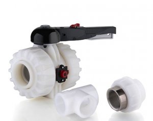 Ассортимент изделий из поливинилиденфторида включает комплекты шаровых кранов, межфланцевых затворов, труб и фитингов для горячего соединения плавлением, используемых при создании рабочих и обслуживающих линий для перекачки под давлением производственных жидкостей с температурой в пределах от -40*C до 140*C.