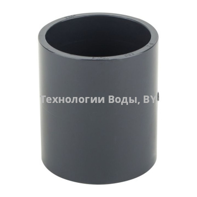 Соединительные равнопроходные муфты PVC-U предназначены для соединения труб между собой на прямых участках трубопроводов. Конструктивно такие фитинги представляют собой пластиковый цилиндр с двумя патрубками, расположенными на одной продольной оси. Для упрощения монтажа по краю каждого раструба предусмотрена направляющая фаска, а внутри муфты два упорных бурта для ограничения положения труб.
